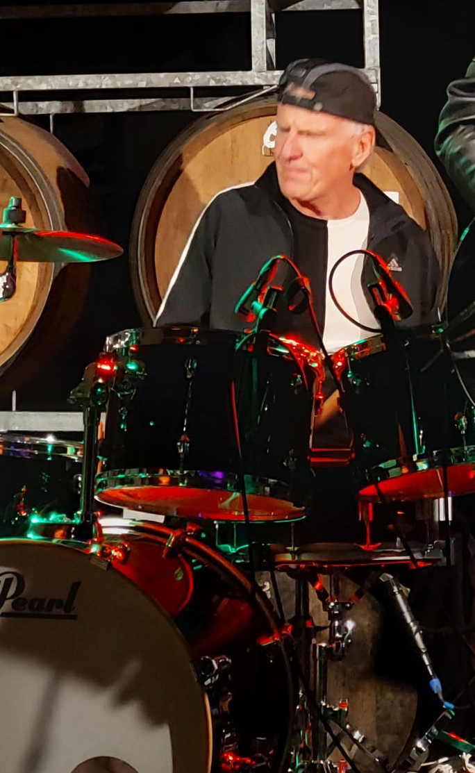 Am Schlagzeug in seinem Element. Mit seinem dynamischen und druckvollen Spiel ist er der Herzschlag der Band: von ruhig bis rasend, von gleichmäßig bis hämmernd.