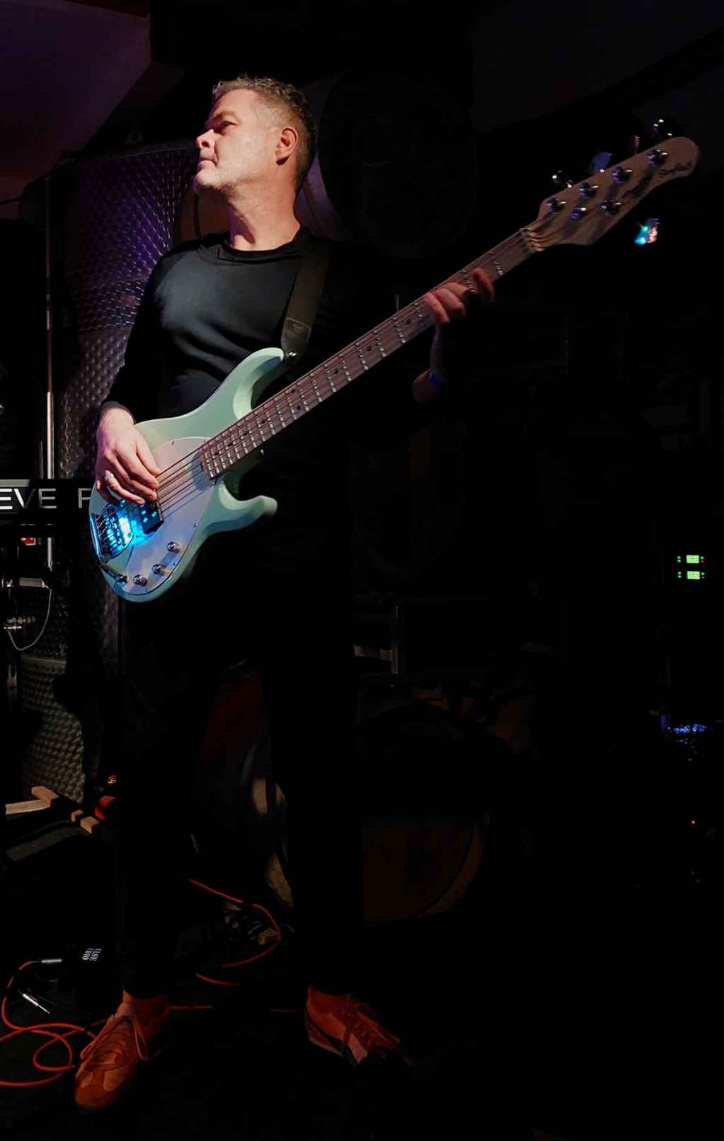 Musikalisches Multitalent. Spielt neben Bass auch Keyboards und Trompete. Seit über 25 Jahren in unterschiedlichen Formationen unterwegs und kümmert sich mit Vorliebe um den Groove im unteren Frequenzbereich.